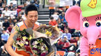 [OSEN=인천, 곽영래 기자] 21일 오후 인천삼산체육관에서 2015-2016 KCC 프로농구 인천 전자랜드와 울산 모비스의 경기가 열렸다.하프타임때 진행된 전자랜드 이현호 은퇴식에서 이현호가 가족들로부터 꽃다발을 건네받고 있다.모비
