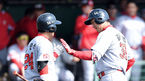 [OSEN=오키나와, 이대선 기자] 21일 일본 오키나와 고친다구장에서 한화 이글스와 SK 와이번스의 연습경기가 열렸다.5회초 1사에서 SK 김동엽이 솔로 홈런을 치고 더그아웃에서 동료들과 하이파이브를 하고 있다.SK 와이번스는 2월 1