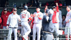 [OSEN=오키나와, 이대선 기자] 21일 일본 오키나와 고친다구장에서 한화 이글스와 SK 와이번스의 연습경기가 열렸다.4회초 1사 2루에서 SK 유서준의 적시 3루타때 홈을 밟은 2루주자 박계현이 더그아웃에서 하이파이브를 하고 있다.S