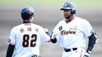 [OSEN=오키나와, 이대선 기자] 21일 일본 오키나와 고친다구장에서 한화 이글스와 SK 와이번스의 연습경기가 열렸다.2회말 한화 로사리오가 안타를 치고 윤재국 코치와 하이파이브를 하고 있다.SK 와이번스는 2월 12일(금)부터 3월 4