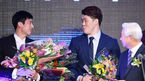 [OSEN=지형준 기자] '2015-2016 KCC 프로농구' 시상식이 22일 오후 서울 반포동 JW 메리어트 호텔에서 열렸다.오리온 이승현이 최고 수비상으로 발표디자 KGC 양희종과 기뻐하고 있다.이날 시상식에서는 기자단 투표를 통해 정규리그