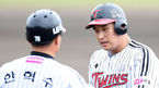 [OSEN=오키나와, 이대선 기자] 22일 일본 오키나와 고친다구장에서 한화 이글스와 LG 트윈스의 연습경기가 열렸다.6회초 LG 이형종이 적시타를 치고 한혁수 코치와 하이파이브를 하고 있다.한화 이글스는 오키나와에서 국내외 팀들
