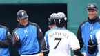 [OSEN=오키나와, 이대선 기자] KIA 타이거즈가 24일 일본 오키나와 나고구장에서 니혼햄 파이터스와 연습경기를 가졌다.3회말 2사 2루에서 니혼햄 나카타가 투런 홈런을 날리고 더그아웃에서 구리야마 히데키 감독과 하이파이브를