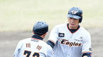 [OSEN=오키나와, 이대선 기자] 25일 오후 일본 오키나와 온나손에 있는 아카마구장에서 삼성 라이온즈와 한화 이글스의 경기가 열렸다.4회초 무사 만루에서 한화 정근우가 적시타를 치고 윤재국 코치와 하이파이브를 하고 있다. /s