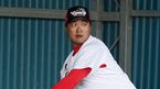 [OSEN=오키나와, 이대선 기자] 25일 오후 일본 오키나와 온나손에 있는 아카마구장에서 삼성 라이온즈와 한화 이글스의 경기가 열렸다.1회말 무사에서 한화 선발 투수 김범수가 힘차게 공을 던지고 있다. /sunday@osen.co.kr