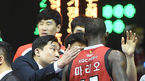 [OSEN=안양, 곽영래 기자] 25일 안양체육관에서 '2015-2016 KCC 프로농구' 6강 플레이오프 1차전 안양 KGC와 서울 삼성의 경기가 열렸다.3쿼터 KGC 김승기 감독이 마리오와 이야기를 나누고 있다.KGC인삼공사가 4위, 삼성이 5위를 차지한