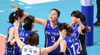 [OSEN=화성,박준형 기자] 27일 오후 경기도 화성시 화성경기타운 내 화성실내체육관에서 열린 'NH농협 2015-16 V-리그' 여자부 IBK기업은행과 현대건설의 경기, 1세트 IBK 김사니가 동료들과 기뻐하고 있다.현재 선두 IBK기업은행(18승 9