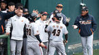 [OSEN=오키나와, 이대선 기자] 27일 일본 오키나와 킨구장에서 KIA 타이거즈와 한화 이글스의 연습경기가 열렸다.9회초 한화 윤승열의 2타점 적시타때 홈을 밟은 장운호와 이창열이 더그아웃에서 환호하고 있다.KIA는 지난 26일 오키