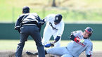 [OSEN=오키나와, 이대선 기자] 28일 일본 오키나와 차탄구장에서 주니치 드래건스와 LG 트윈스의 연습경기가 열렸다.6회초 LG 유강남이 안타를 치고 2루로 쇄도했으나 아웃되고 있다.오키나와에 있는 18일 동안 8번의 실전을 통해 20