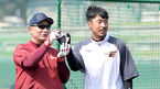 [OSEN=오키나와, 이대선 기자] 29일 일본 오키나와 고친다구장에서 한화 이글스와 넥센 히어로즈의 연습경기가 열렸다.경기에 앞서 한화 니시구치 코치가 김민우를 지도하고 있다.한화는 지난 27일 킨구장에서 열린 KIA와의 연습경