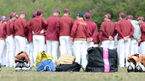 [OSEN=오키나와, 이대선 기자] 29일 일본 오키나와 고친다구장에서 한화 이글스와 넥센 히어로즈의 연습경기가 열렸다.경기에 앞서 고친다 구장에 도착한 넥센 선수들이 미팅을 갖고 있다. 가지런하게 놓인 훈련 장비가 눈길을