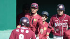 [OSEN=오키나와, 이대선 기자] 2일 일본 오키나와 구시가와구장에서 SK 와이번스와 넥센 히어로즈의 연습경기가 열렸다.9회초 1사 1루에서 넥센 고종욱의 적시타 때 박정음이 홈을 밟고 더그아웃에서 환호하고 있다.SK는 지난 1일