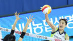 [OSEN=인천, 곽영래 기자] 5일 오후 인천 계양체육관에서 '2015-2016 NH농협 V리그' 흥국생명과 현대건설의 경기가 열렸다.현대건설 김세영이 스파이크를 때리고 있다.3위와 2위의 맞대결이지만 두 팀의 승차는 6점차. 이미 2위를 확정