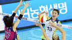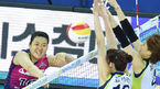 [OSEN=인천, 곽영래 기자] 5일 오후 인천 계양체육관에서 '2015-2016 NH농협 V리그' 흥국생명과 현대건설의 경기가 열렸다.현대건설 황연주가 흥국생명 이재영의 공격을 막아낸 뒤 기뻐하고 있다.3위와 2위의 맞대결이지만 두 팀의 승