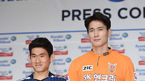 [OSEN=민경훈 기자] 7일 오후 서울시 서대문구 홍은동 그랜드힐튼호텔 그랜드볼룸에서 열린 현대오일뱅크 K리그 클래식 2016 미디어데이 기자회견서 전남 최효진과 수원 FC 이승현이 포즈를 취하고 있다.오는 12일 개막하는 현대오