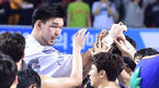 [OSEN=전주, 백승철 기자] 7일 오후 전북 전주시 전주실내체육관에서 열린 '2015-2016 KCC 프로농구' 4강 플레이오프 1차전 전주 KCC와 안양 KGC의 경기 종료 후 하승진이 동료들과 하이파이브를 하고 있다.전주 KCC가 안양 KGC를 완파하고