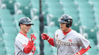 [OSEN=울산, 민경훈 기자] 8일 오후 울산 문수야구장에서 롯데 자이언츠와 SK 와이번스의 '2016 타이어뱅크 KBO리그' 첫 시범경기, 7회초 SK 선두타자 최승준이 우월 솔로 홈런을 날린 후 덕아웃에서 고메즈와 하이파이브를 하고 있다.