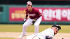 [OSEN=대전, 백승철 기자] 8일 오후 대전 한화생명 이글스파크에서 열린 '2016 타이어뱅크 KBO 리그' 한화 이글스와 넥센 히어로즈의 시범경기 6회초 1사 1루 박정음의 내야안타를 잡아 몸을 날려 1루로 송구한 김태균이 그라운드에