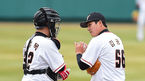 [OSEN=대전, 백승철 기자] 8일 오후 대전 한화생명 이글스파크에서 열린 '2016 타이어뱅크 KBO 리그' 한화 이글스와 넥센 히어로즈의 시범경기 1회초 김용주와 차일목이 이야기를 나누고 있다.2016년 시범경기가 수원(두-kt), 대전(넥-