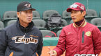 [OSEN=대전, 백승철 기자] 8일 오후 대전 한화생명 이글스파크에서 열리는 '2016 타이어뱅크 KBO 리그' 한화 이글스와 넥센 히어로즈의 시범경기 시작 전 김성근 감독과 염경엽 감독이 이야기를 나누고 있다.2016년 시범경기가 수원(