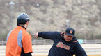 [OSEN=울산, 민경훈 기자] 8일 오후 울산 문수야구장에서 롯데 자이언츠와 SK 와이번스의 '2016 타이어뱅크 KBO리그' 첫 시범경기를 앞두고 양 팀이 훈련 시간을 가졌다.롯데 최준석이 SK 채병용을 배트로 안마해주고 있다.시범경기