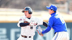 [OSEN=울산, 민경훈 기자] 10일 오후 울산 문수야구장에서 롯데 자이언츠와 삼성 라이온즈의 '2016 타이어뱅크 KBO리그' 시범경기, 5회말 1사 주자 1루 롯데 손아섭 타석에서 1루 주자 손용석이 도루를 시도했으나 런다운에 걸리며 태