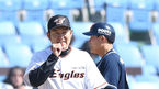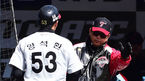 [OSEN=창원, 백승철 기자] 10일 오후 경남 창원시 마산야구장에서 열린 '2016 타이어뱅크 KBO 리그' NC 다이노스와 LG 트윈스의 시범경기 2회초 1사 2루 백창수의 1타점 2루타에 득점한 2루주자 양석환이 양상문 감독과 하이파이브를 하