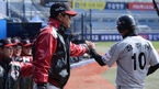 [OSEN=창원, 백승철 기자] 10일 오후 경남 창원시 마산야구장에서 열린 '2016 타이어뱅크 KBO 리그' NC 다이노스와 LG 트윈스의 시범경기 1회초 무사 3루 문선재의 희생플라이에 득점한 정주현이 양상문 감독과 하이파이브를 하고 있다