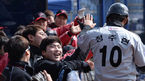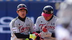 [OSEN=창원, 백승철 기자] 10일 오후 경남 창원시 마산야구장에서 열린 '2016 타이어뱅크 KBO 리그' NC 다이노스와 LG 트윈스의 시범경기 1회초 무사 3루 문선재의 희생플라이에 득점한 정주현이 덕아웃으로 들어가며 동료들과 하이파