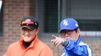 [OSEN=울산, 민경훈 기자] 10일 오후 울산 문수야구장에서 롯데 자이언츠와 삼성 라이온즈의 '2016 타이어뱅크 KBO리그' 시범경기, 경기 전 양팀 훈련 시간에 롯데 조원우 감독과 삼성 류중일 감독이 롯데 타격훈련을 지켜보며 즐겁