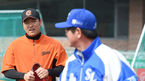 [OSEN=울산, 민경훈 기자] 10일 오후 울산 문수야구장에서 롯데 자이언츠와 삼성 라이온즈의 '2016 타이어뱅크 KBO리그' 시범경기, 경기 전 양팀 훈련 시간에 이종범 해설 위원이 롯데 박종윤에게 포즈를 취하고 있다.시범경기는 8일