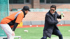 [OSEN=울산, 민경훈 기자] 10일 오후 울산 문수야구장에서 롯데 자이언츠와 삼성 라이온즈의 '2016 타이어뱅크 KBO리그' 시범경기, 경기 전 양팀 훈련 시간에 롯데 강민호가 삼성 구자욱에게 제식훈련을 시키고 있다.시범경기는 8일