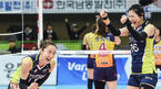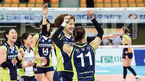 [OSEN=수원,박준형 기자] 현대건설이 11일 오후 수원실내체육관서 열린 'NH농협 2015-2016 V-리그 여자부 플레이오프 1차전' 흥국생명와 경기에서 세트 스코어 3-1로 승리했다.경기종료 후 현대건설 선수들이 기뻐하고 있다. / soul1014@os