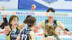 [OSEN=수원,박준형 기자] 현대건설이 11일 오후 수원실내체육관서 열린 'NH농협 2015-2016 V-리그 여자부 플레이오프 1차전' 흥국생명와 경기에서 세트 스코어 3-1로 승리했다.경기종료 후 현대건설 선수들이 기뻐하고 있다. / soul1014@os