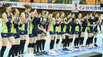 [OSEN=수원,박준형 기자] 현대건설이 11일 오후 수원실내체육관서 열린 'NH농협 2015-2016 V-리그 여자부 플레이오프 1차전' 흥국생명와 경기에서 세트 스코어 3-1로 승리했다.경기종료 후 현대건설 선수들이 팬들에게 인사를 하고 있