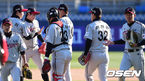 [OSEN=창원, 백승철 기자] 12일 오후 경남 창원시 마산야구장에서 '2016 타이어뱅크 KBO 리그' NC 다이노스와 두산 베어스의 시범경기가 열렸다.경기 종료 후 NC 선수들이 하이파이브를 하고 있다. NC는 이날 두산을 8-7로 꺾고 승리했다