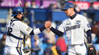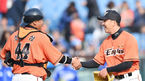 [OSEN=창원, 백승철 기자] 12일 오후 경남 창원시 마산야구장에서 '2016 타이어뱅크 KBO 리그' NC 다이노스와 두산 베어스의 시범경기가 열렸다.경기 종료 후 김태군과 임창민이 하이파이브를 하고 있다. NC는 이날 두산을 8-7로 꺾고