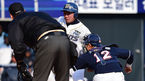 [OSEN=대전, 민경훈 기자] 12일 오후 대전 한화생명 이글스 파크에서 한화 이글스와 삼성 라이온즈의 '2016 타이어뱅크 KBO리그' 시범경기가 열렸다.8회초 2사 주자 1루 삼성 배영섭 타석에서 마운드에 오른 한화 정우람이 조인성과