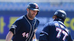 [OSEN=창원, 백승철 기자] 12일 오후 경남 창원시 마산야구장에서 '2016 타이어뱅크 KBO 리그' NC 다이노스와 두산 베어스의 시범경기가 열렸다.1회초 2사 1루 에반스가 투런홈런을 치고 전형도 코치와 하이파이브를 하고 있다. / baik@o