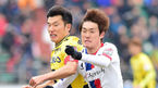 [OSEN=광양, 백승철 기자] 13일 오후 전남 광양시 광양축구전용구장에서 '현대오일뱅크 K리그 클래식 2016' 전남 드래곤즈와 수원FC의 경기가 열렸다.경기 전반 전남 최효진과 수원 이광진이 볼다툼을 하고 있다. / baik@osen.co.kr