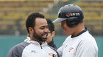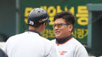 [OSEN=대전, 민경훈 기자] 13일 오후 대전 한화생명 이글스 파크에서 한화 이글스와 삼성 라이온즈의 '2016 타이어뱅크 KBO리그' 시범경기가 열릴 예정인 가운데 양 팀 훈련시간이 진행됐다.훈련 중 한화 김태균이 최진행과 얘기를