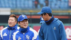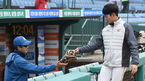 [OSEN=대전, 민경훈 기자] 13일 오후 대전 한화생명 이글스 파크에서 한화 이글스와 삼성 라이온즈의 '2016 타이어뱅크 KBO리그' 시범경기가 열릴 예정인 가운데 양 팀 훈련시간이 진행됐다.훈련 중 삼성 배영섭과 구자욱이 얘기를