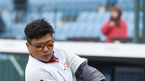 [OSEN=대전, 민경훈 기자] 13일 오후 대전 한화생명 이글스 파크에서 한화 이글스와 삼성 라이온즈의 '2016 타이어뱅크 KBO리그' 시범경기가 열릴 예정인 가운데 양 팀 훈련시간이 진행됐다.훈련 중 1군으로 복귀한 한화 로사리오가