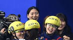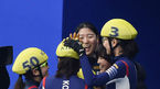 [OSEN=목동, 지형준 기자] 13일 오후 서울 목동아이스링크에서 '2016 국제빙상연맹(ISU) 세계쇼트트랙선수권대회'가 열렸다.여자 3,000m 릴레이에서 한국 선수들이 금메달을 따며 기뻐하고 있다. 1위로 결승선을 통과한 중국은 실격. /