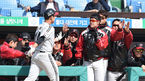 [OSEN=대전, 지형준 기자] 15일 오후 대전 한화생명 이글스 파크에서 한화 이글스와 삼성 라이온즈의 '2016 타이어뱅크 KBO리그' 시범경기가 열렸다.5회초 2사 1루에서 LG 김재율이 강승호의 동점 적시 3루타에 홈을 밟고 더그아웃에서