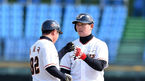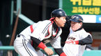 [OSEN=대전, 지형준 기자] 15일 오후 대전 한화생명 이글스 파크에서 한화 이글스와 삼성 라이온즈의 '2016 타이어뱅크 KBO리그' 시범경기가 열렸다.4회말 1사에서 한화 이성열이 2루타를 날리고 윤재국 코치와 주먹을 맞대고 있다./jp