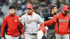 [OSEN=고척, 민경훈 기자] 16일 오후 서울시 고척스카이돔에서 '2016 타이어뱅크 KBO 리그' 넥센 히어로즈와 SK 와이번스의 시범경기가 열렸다.7회말 1사 넥센 고종욱 타구에 맞은 SK 채병용이 교체되고 있다./ rumi@osen.co.kr