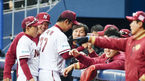 [OSEN=고척, 민경훈 기자] 16일 오후 서울시 고척스카이돔에서 '2016 타이어뱅크 KBO 리그' 넥센 히어로즈와 SK 와이번스의 시범경기가 열렸다.넥센 선발 신재영이 1회를 삼자범퇴로 막아낸 후 덕아웃에서 동료들과 하이파이브를 하