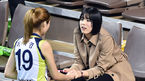 [OSEN=화성, 이동해 기자] 17일 오후 경기도 화성시 화성종합경기타운 실내체육관에서 NH농협 2015-16 V-리그 여자부 IBK기업은행과 현대건설의 챔피언결정전 1차전이 열렸다.2세트 현대건설 에밀리가 김연견과 하이파이브 하고 있다