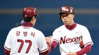 [OSEN=고척, 박준형 기자] 17일 오후 서울시 고척스카이돔에서 열린 '2016 타이어뱅크 KBO 리그' 넥센 히어로즈와 두산 베어스의 시범경기, 5회말 2사 2루 넥센 고종욱이 1타점 적시타를 날린뒤 강병식 코치와 하이파이브를 하고 있다.